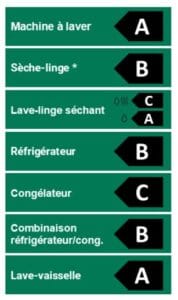 La prime concerne les appareils suivants : réfrigérateur, congélateur, combinaison réfrigérateur-congélateur, lave-vaisselle, lave-linge, sèche-linge et lave-linge séchant.
